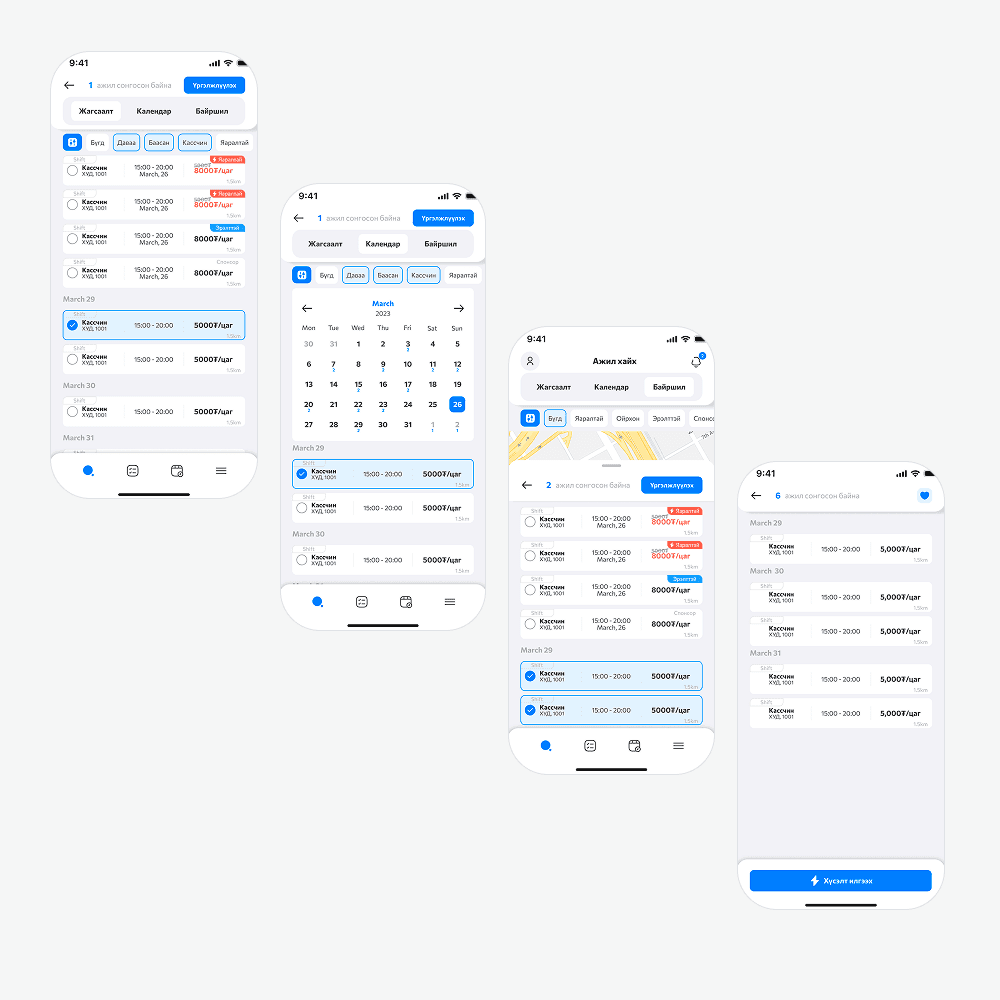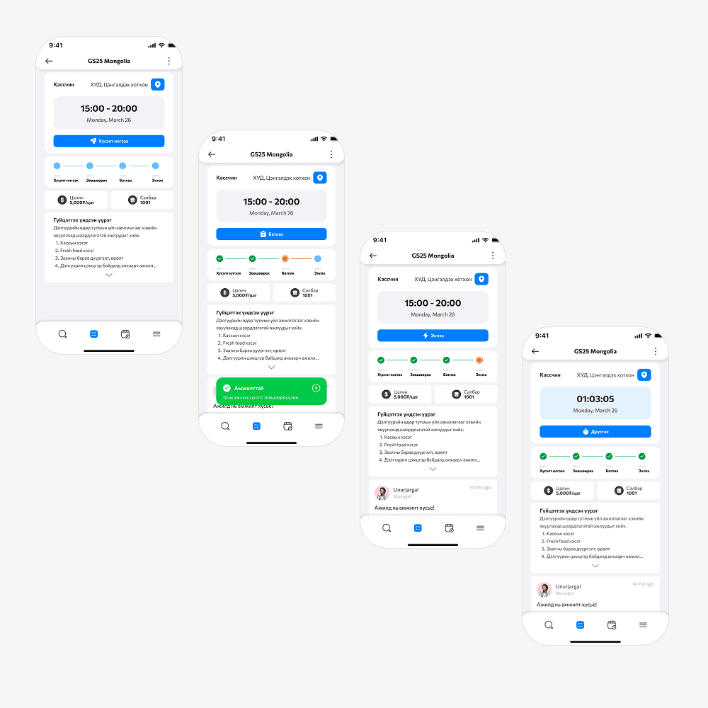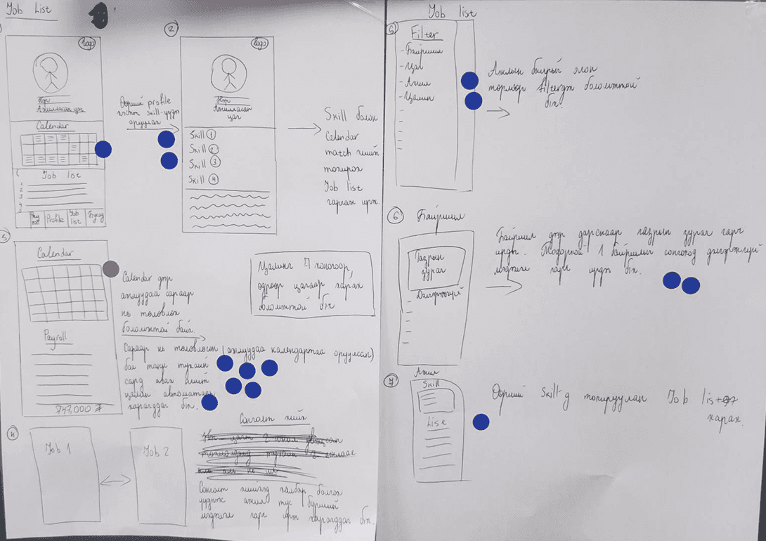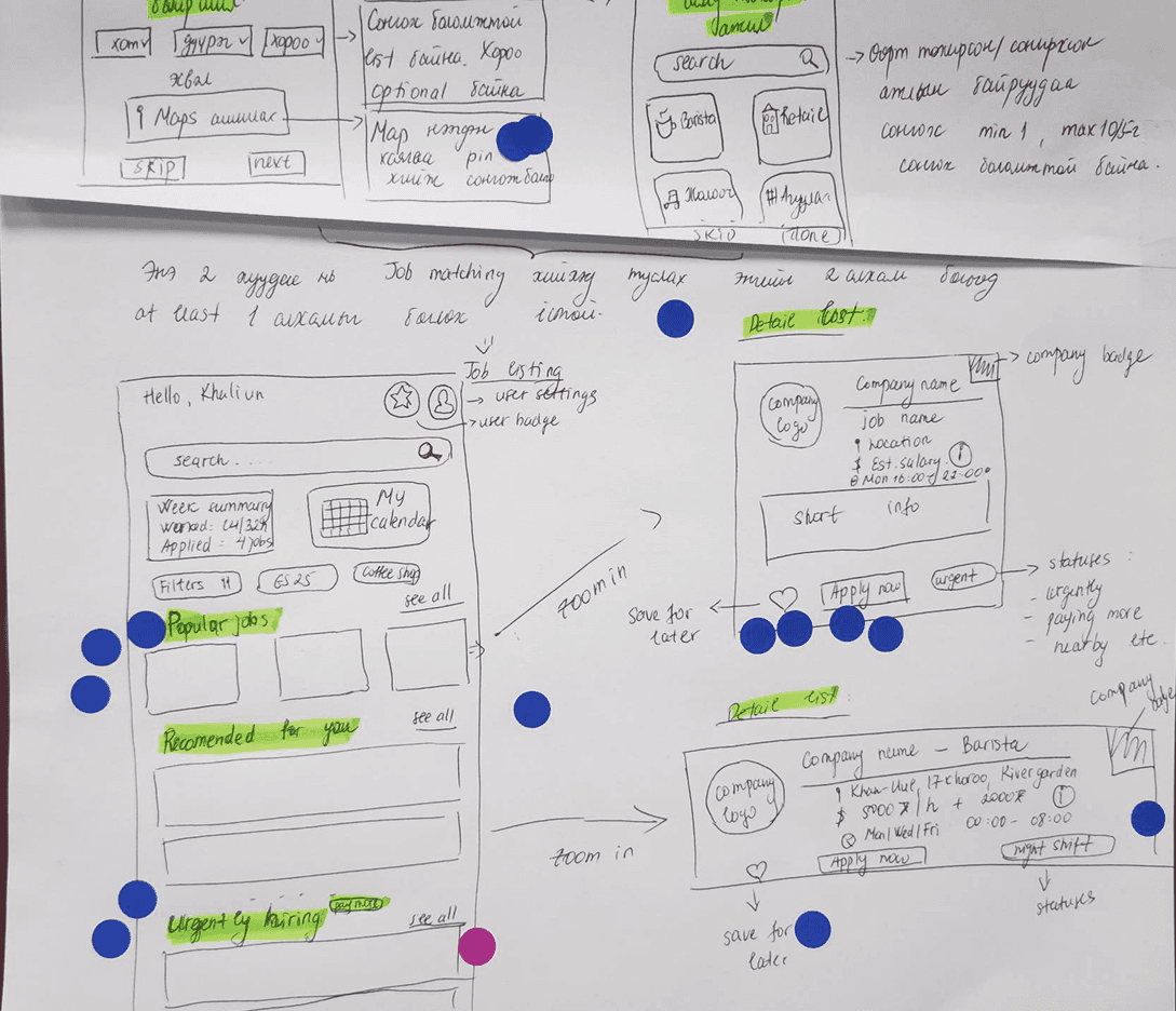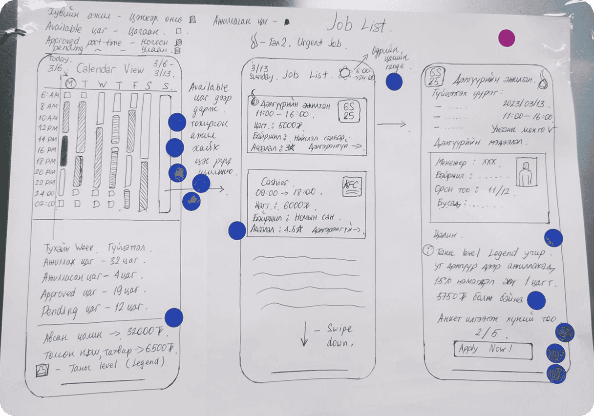 We ran hands-on tests with 7 Mongolian part-time job seekers, walking them through real scenarios: finding gigs, clocking in and out, getting paid. This end-to-end testing helped us validate the core flow and catch pain points that would never show up on paper.