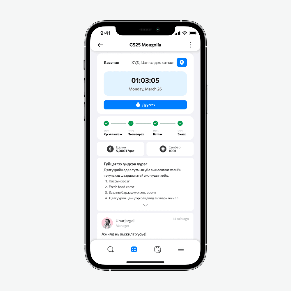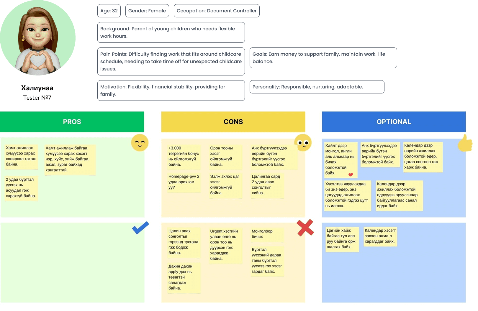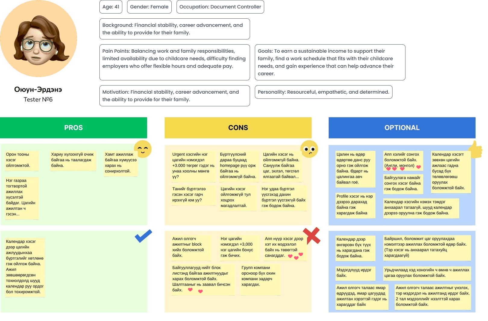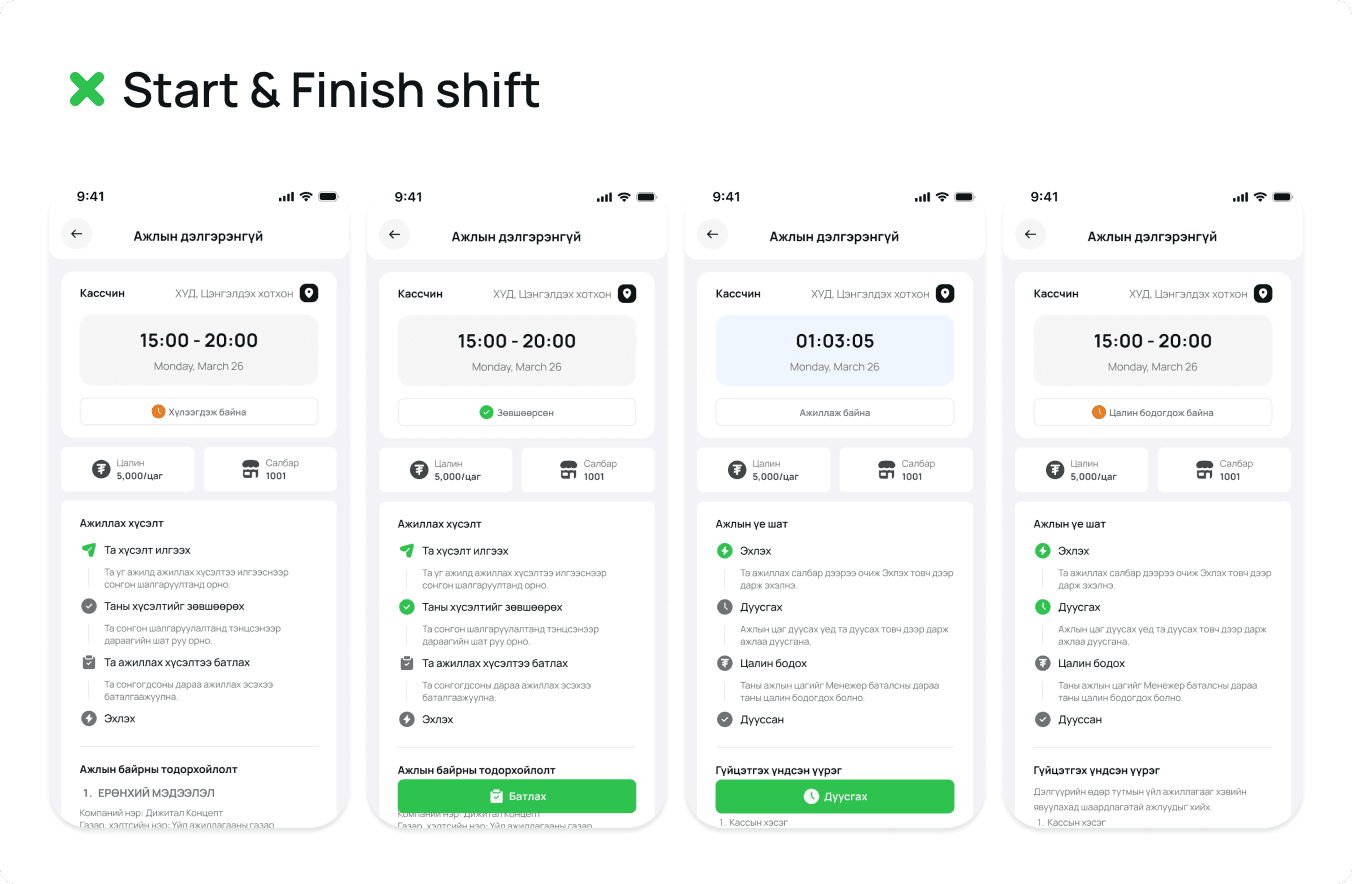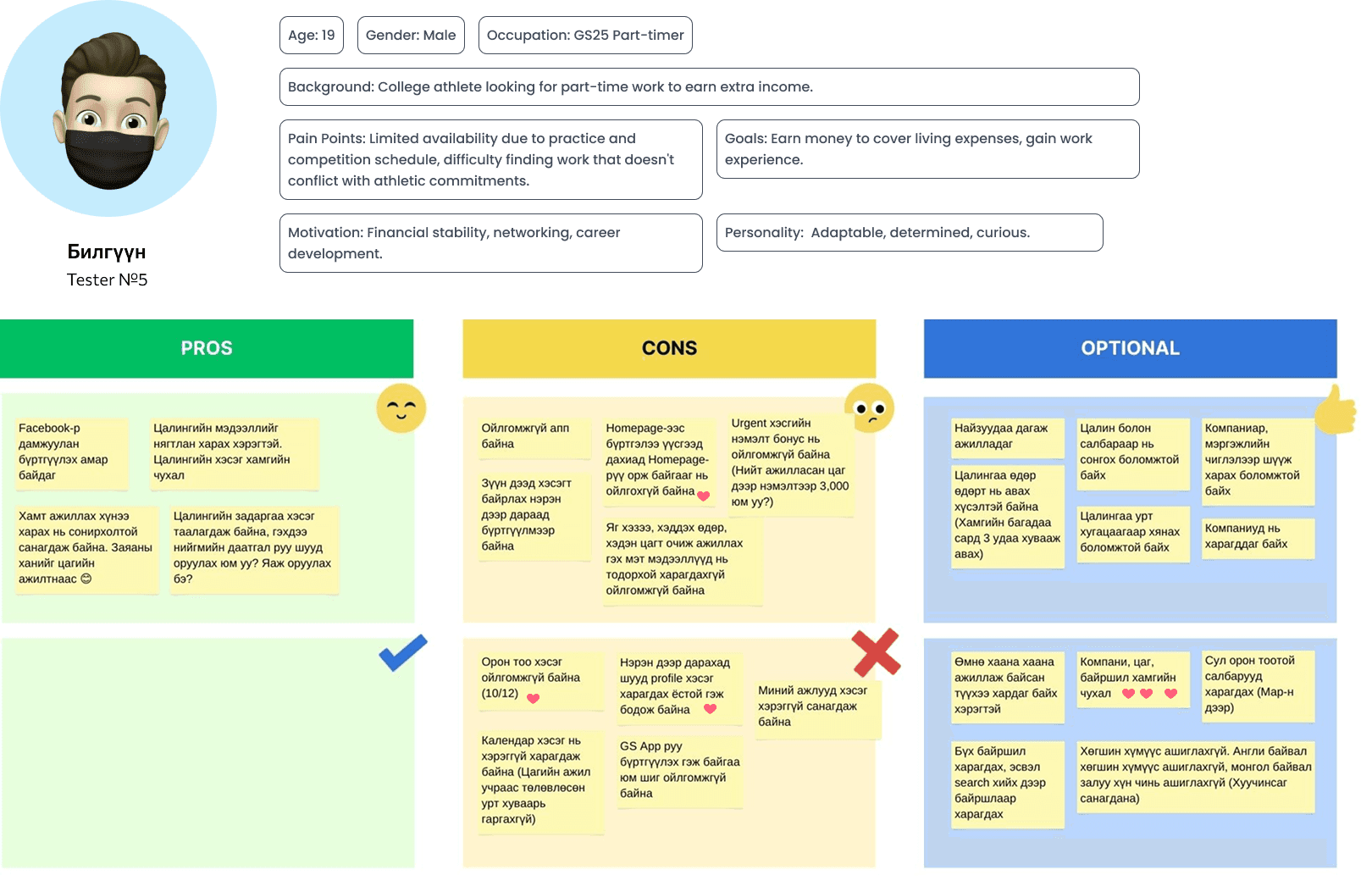 We ran hands-on tests with 7 Mongolian part-time job seekers, walking them through real scenarios: finding gigs, clocking in and out, getting paid. This end-to-end testing helped us validate the core flow and catch pain points that would never show up on paper.