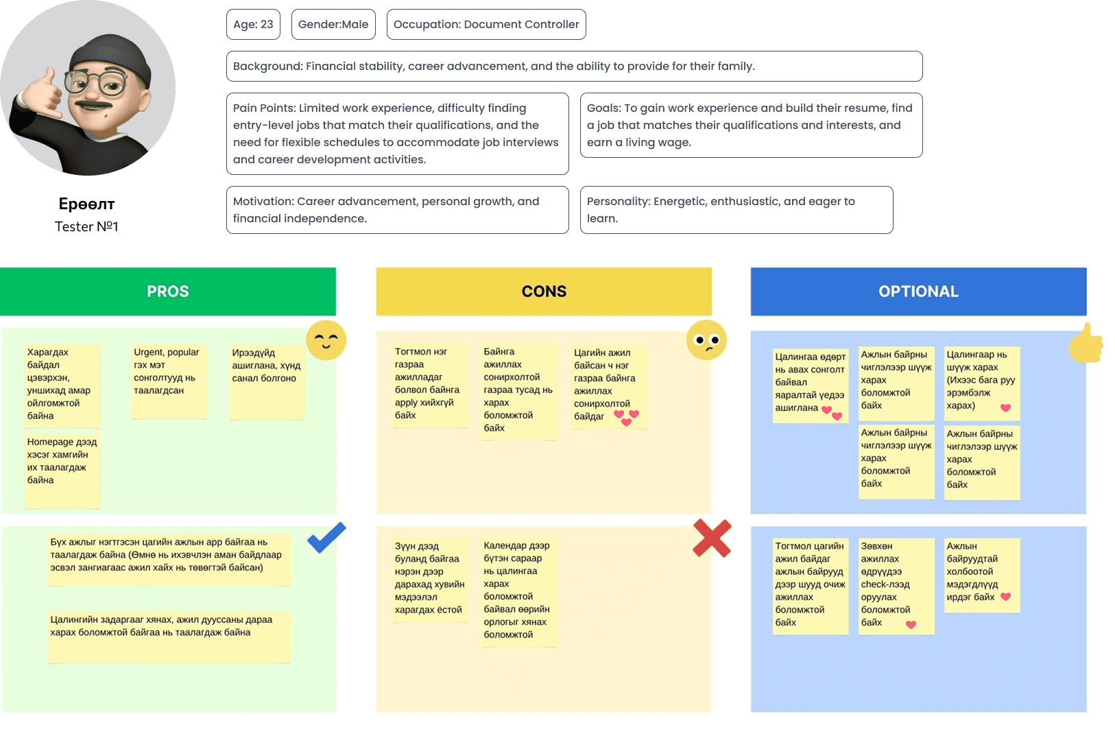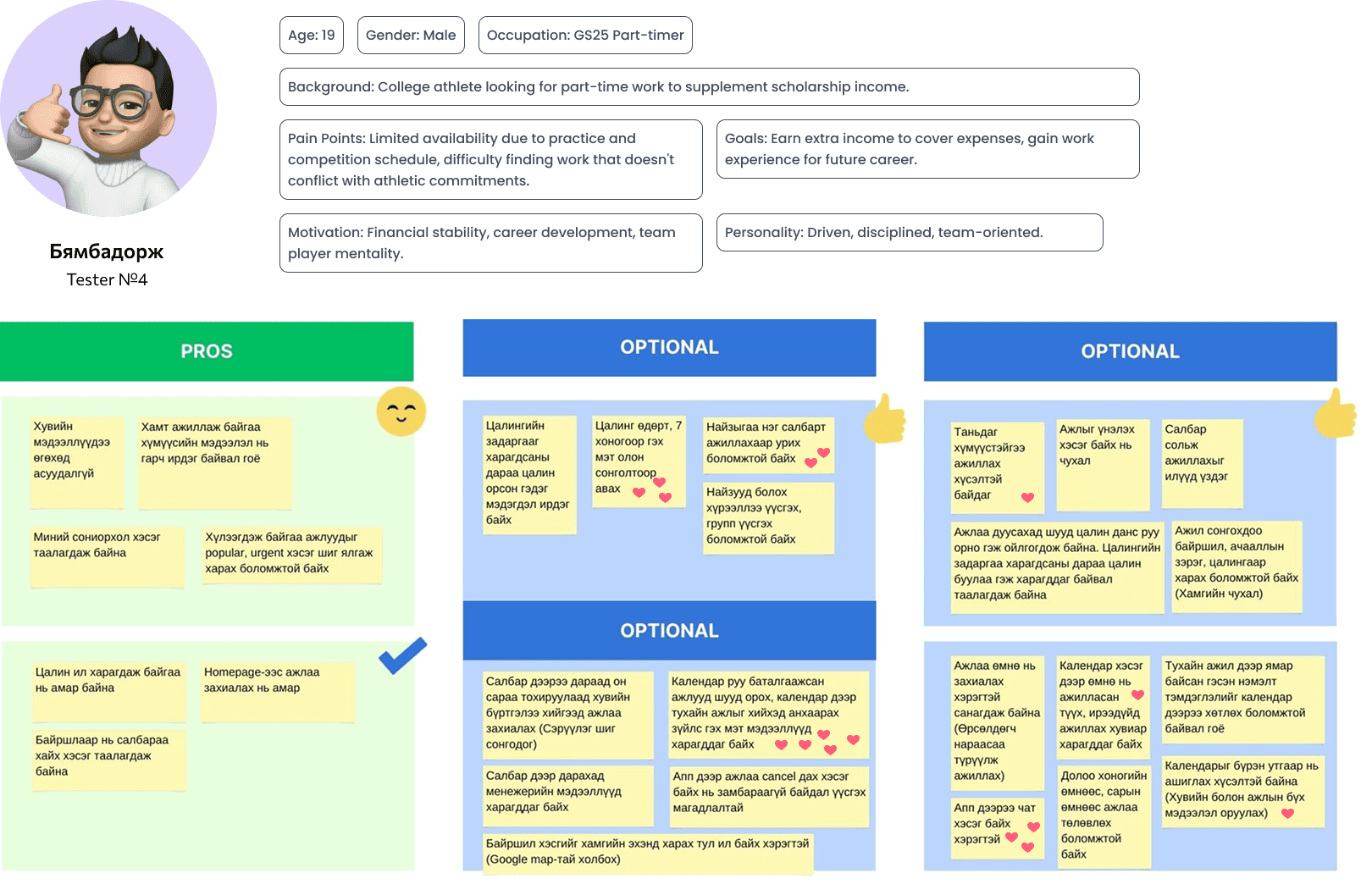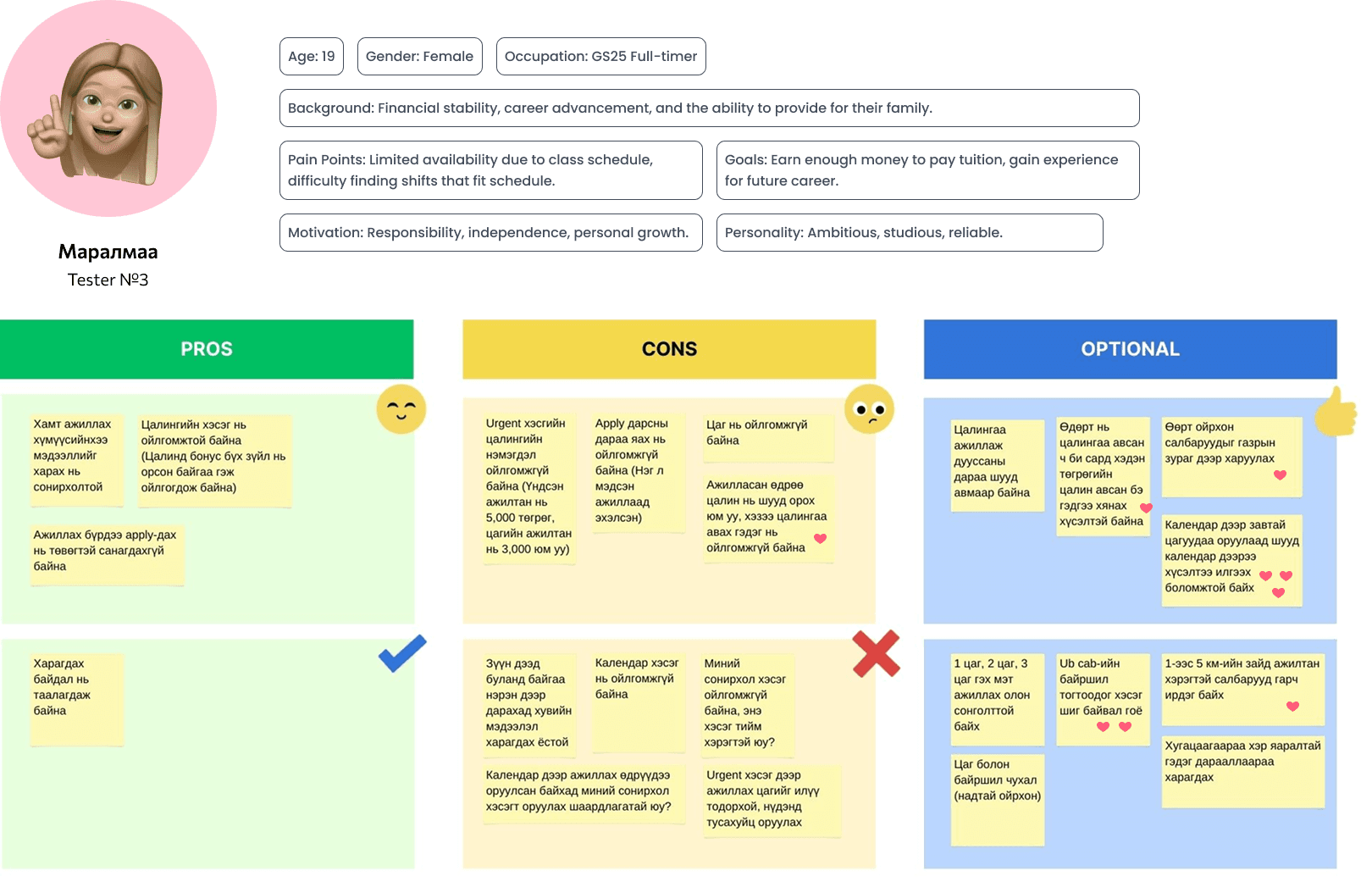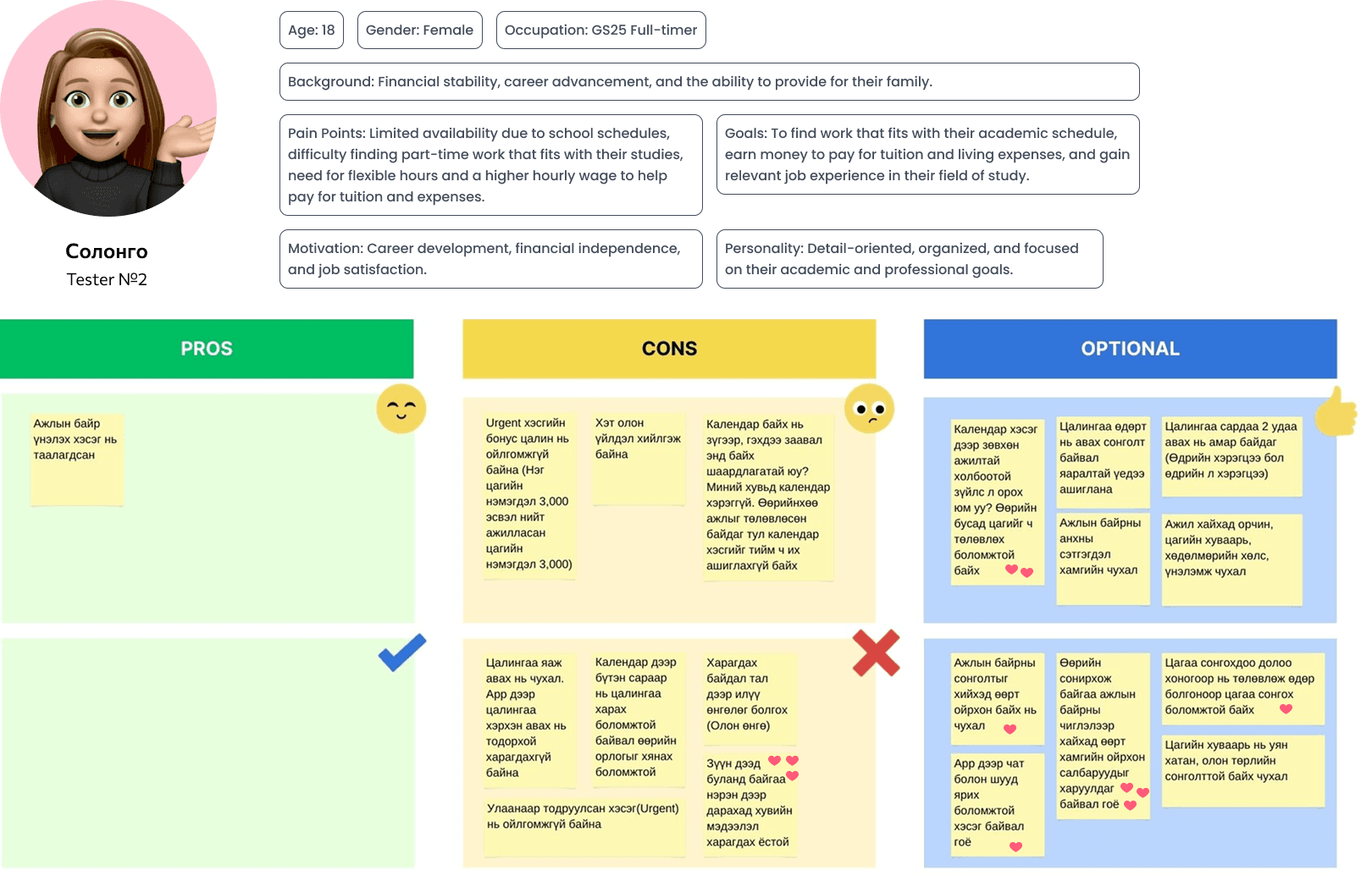 Everyone on the team shared their vision for where this product could go. After voting and getting sign-off from our decider, we locked in one clear goal: to become the biggest part-time job platform in Mongolia.