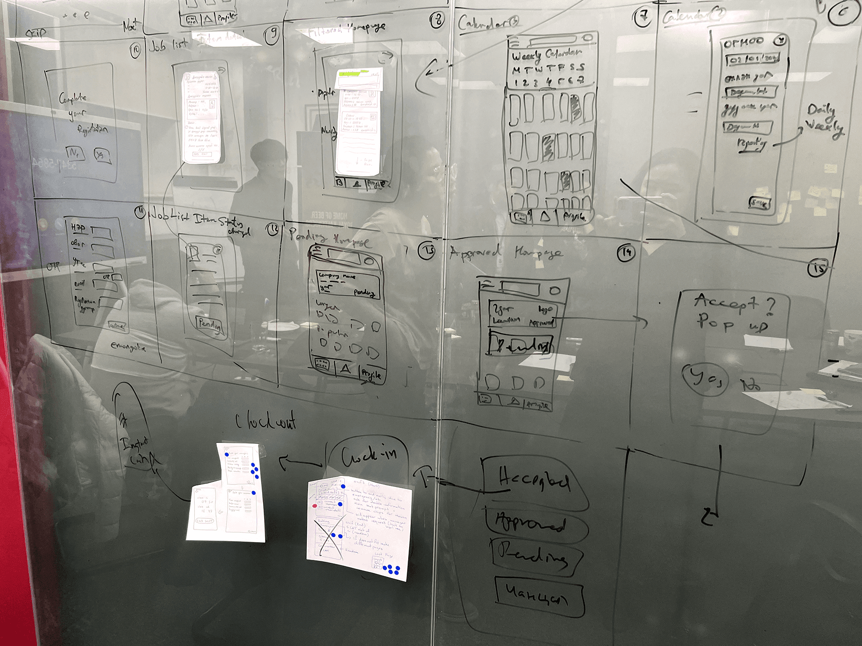 We teamed up with two great backend developers who were also patient enough to explain things we had no clue about. ERD diagrams? What's an ERD? The complexity hit us fast. Connecting gig workers with large employers like GS25, CU, and KFC wasn't just a UI challenge. We spent nights working through the information architecture: how do you actually link workers, shifts, and businesses in a way that makes sense?